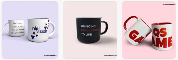 Брендовані чашки легко змінюють контекст і щоразу виконують нову роль. В офісі вони стають частиною щоденного ритму: працівники користуються ними під час роботи, а гості помічають логотип із перших хвилин. Так формується цілісний простір, де кожна деталь підтримує образ компанії.