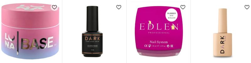 - Edlen Rubber Base 30 ml – популярна благодаря комфортной текстуре в работе.