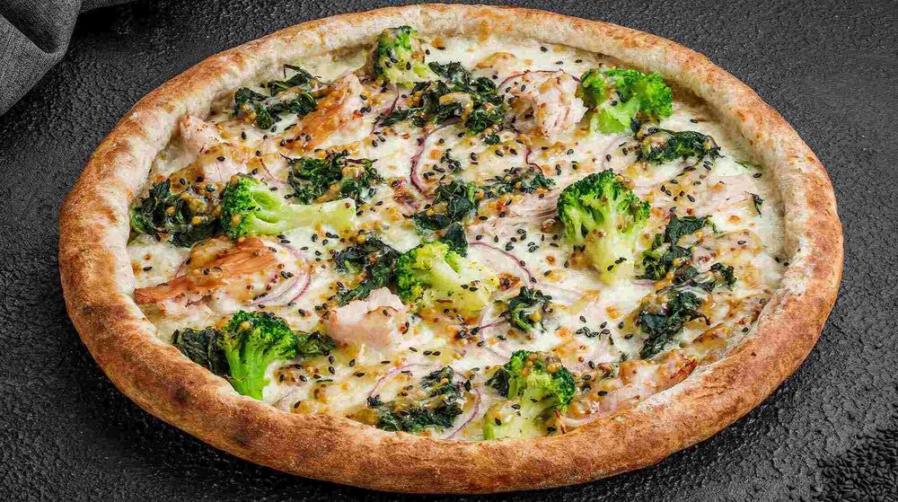 - Піца Fitness. Ідеальний вибір для тих, хто стежить за фігурою: індичка, броколі, шпинат, кунжут і ніжний медово-гірчичний соус.